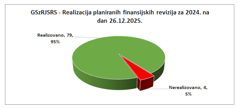 Današnjom objavom 4 izvještaja o provedenoj finansijskoj reviziji za 2024. – za Grad Doboj, Narodnu biblioteku Šamac, Ekonomsku školu Bijeljina i Apoteku Trebinje – Glavna služba za reviziju javnog sektora RS došla je do realizacije ukupno 79 od planom za 2025. predviđenih 83 izvještaja.