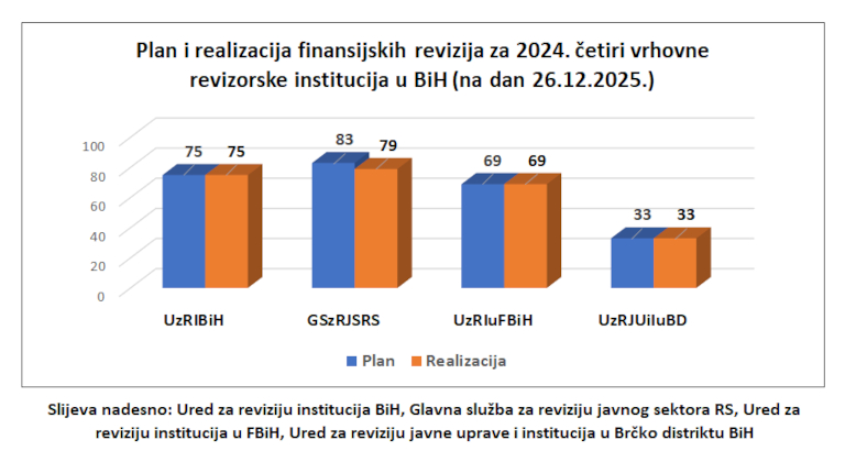 Podsjećamo da su ostale tri vrhovne revizorske institucije u BiH svoje planove finansijskih revizija davno realizovale. (Državni ured za reviziju 16.09.2025., Federalni 29.09.2025. a Ured Brčko distrikta 06.08.2025.).
