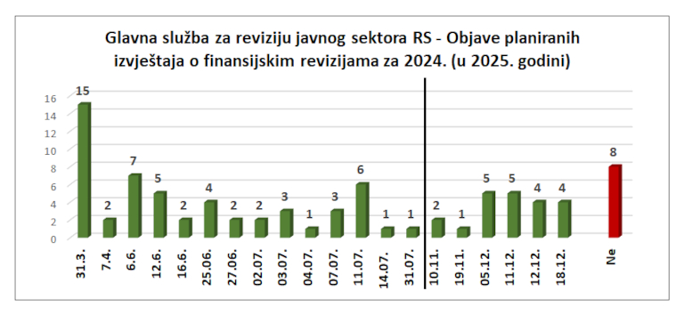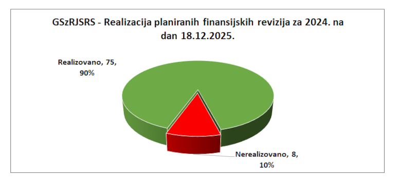 Objavom 18.12.2025. još 4 izvještaja o provedenim finansijskim refizijama za 2024. (iz plana za 2025.), revizorima RS je od planiranih 83 izvještaja ostalo neobjavljeno je još njih 8. Dakle, 10%.